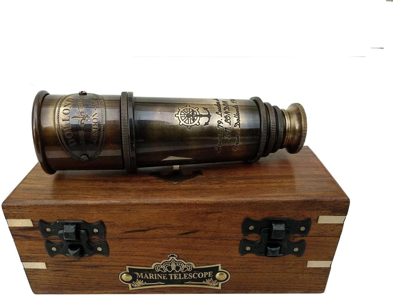 This antique telescope is not only a beautiful object but also a durable and reliable one. Crafted with a classic vintage design and intricate brass work, it delivers excellent viewing performance. The high-quality wooden gift box adds an extra layer of presentation for a meaningful gift or display.