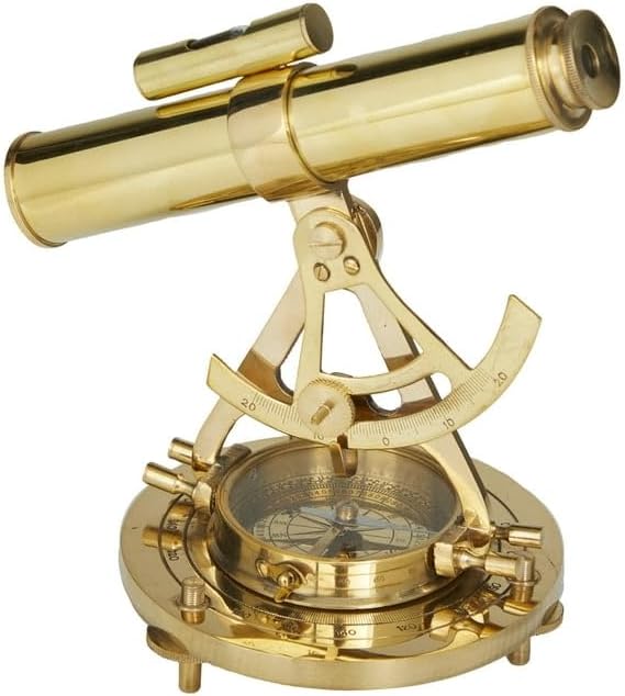 This piece features a vintage-style brass exterior that gives it a rich, aged appearance, perfect for adding character to any room. Its built-in alidade compass and theodolite make it not only a beautiful decorative item but also a useful navigational tool for those interested in maritime and surveying history.