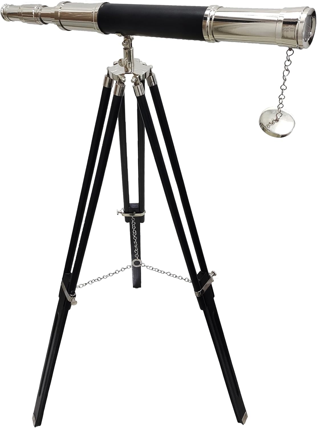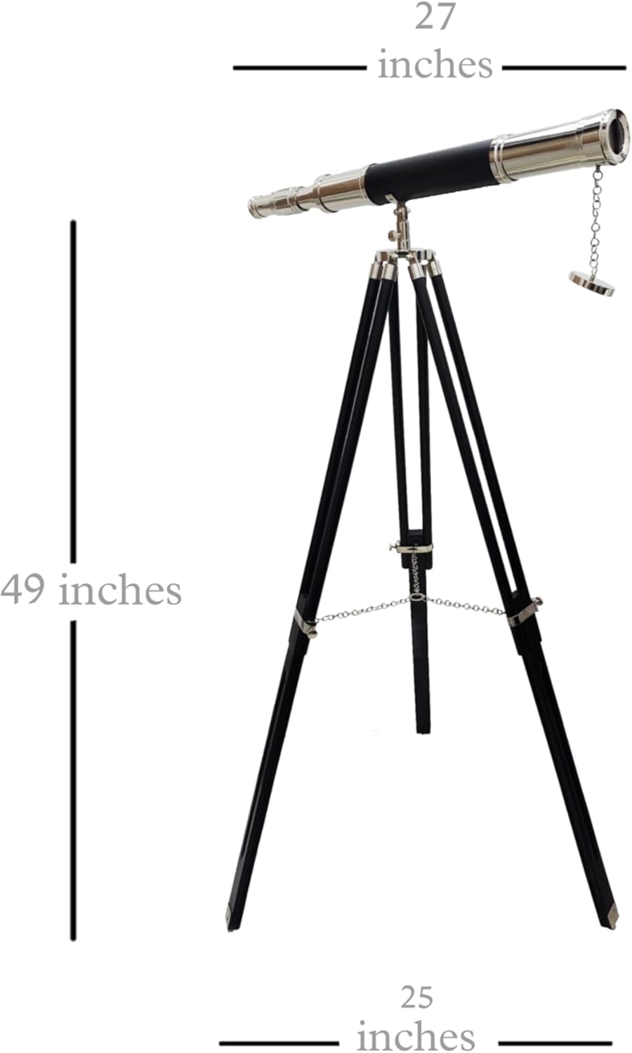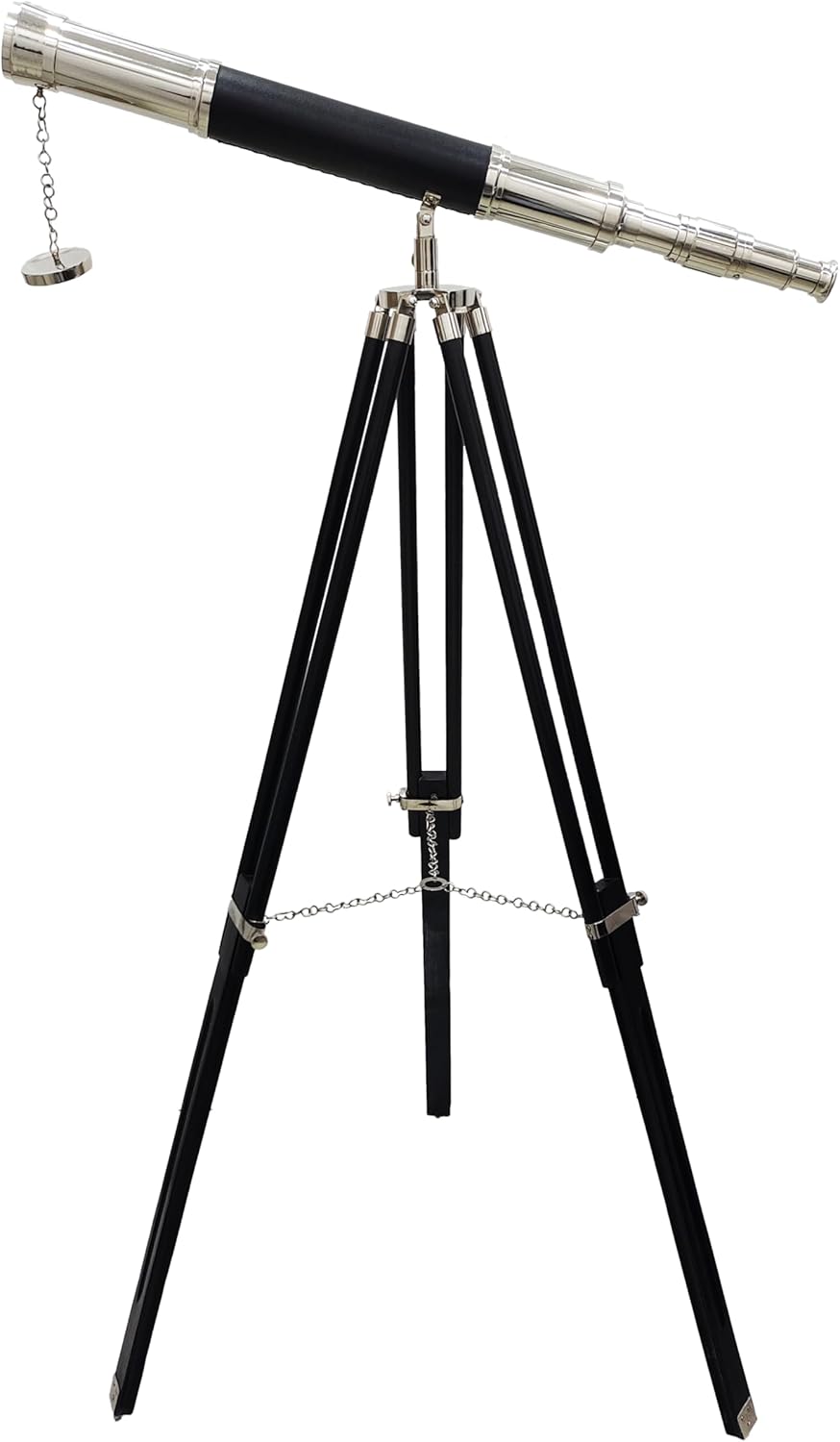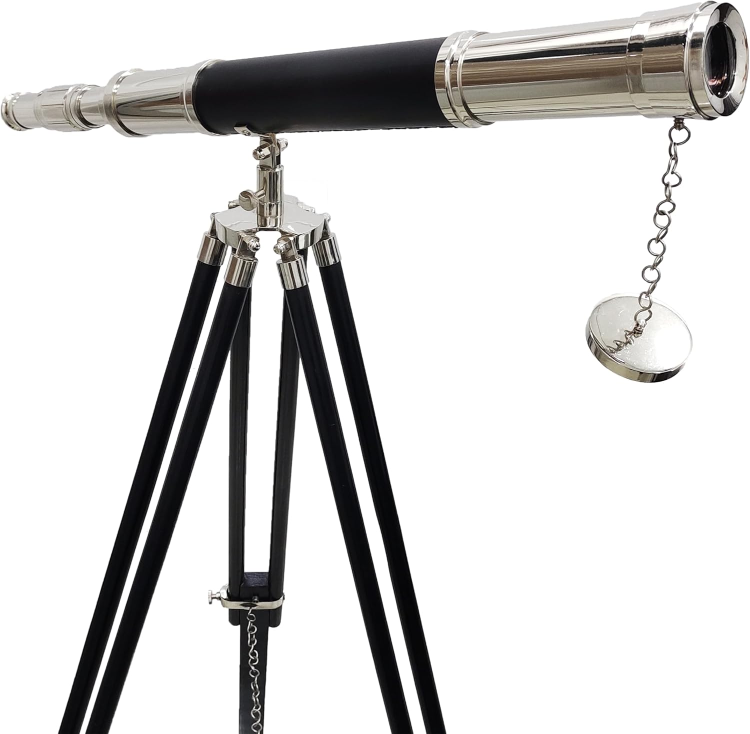 Step back in time with this exquisite Nautical Vintage Handmade Telescope. Combining classic nautical themes with modern design, itâs more than just an instrument â itâs a statement piece. Crafted from premium brass and black wood, this telescope is built to last, with a polished chrome and nickel finish that gives it a sleek, sophisticated look. Whether youâre a history lover, decor enthusiast, or simply looking for a unique gift, this telescope brings elegance and purpose to every space it occupies.