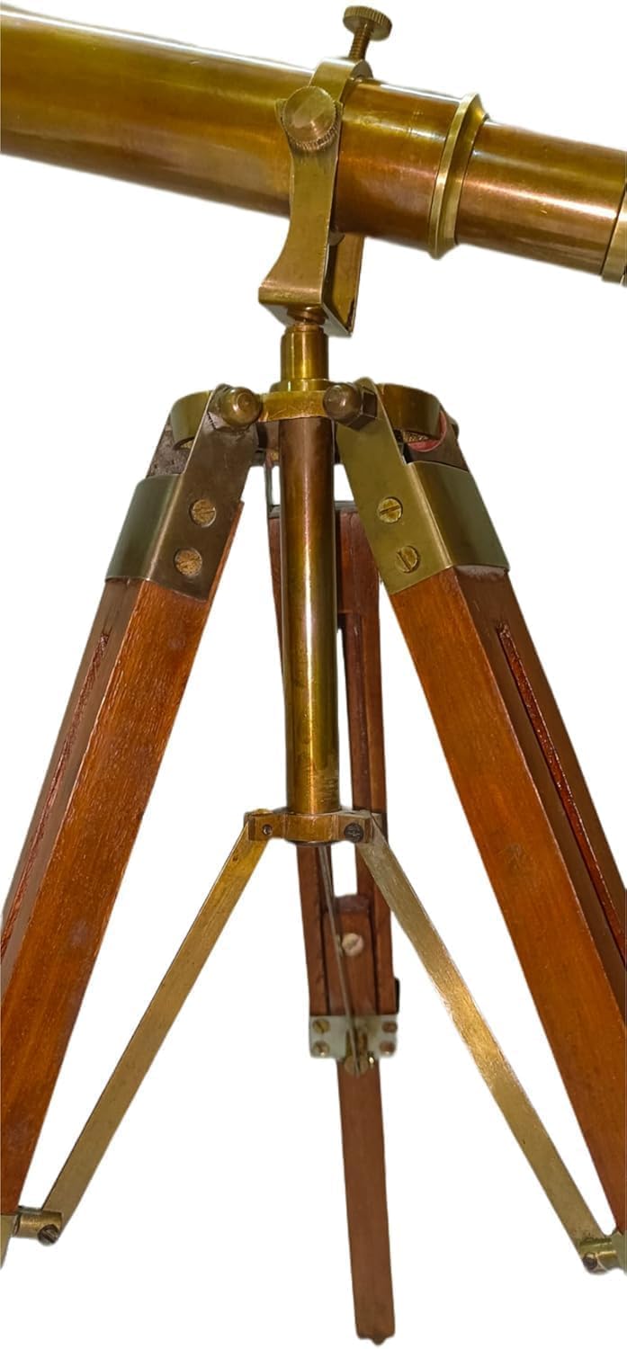 Elevate your space with this beautifully crafted vintage telescope, designed to blend timeless elegance with exceptional functionality. Made from solid brass, this piece features a luxurious and durable finish, while its natural wood accents add a warm, classic touch that complements any interior.