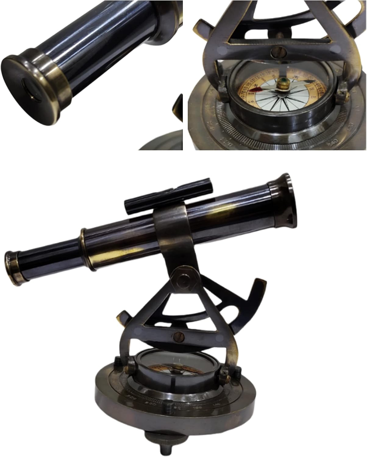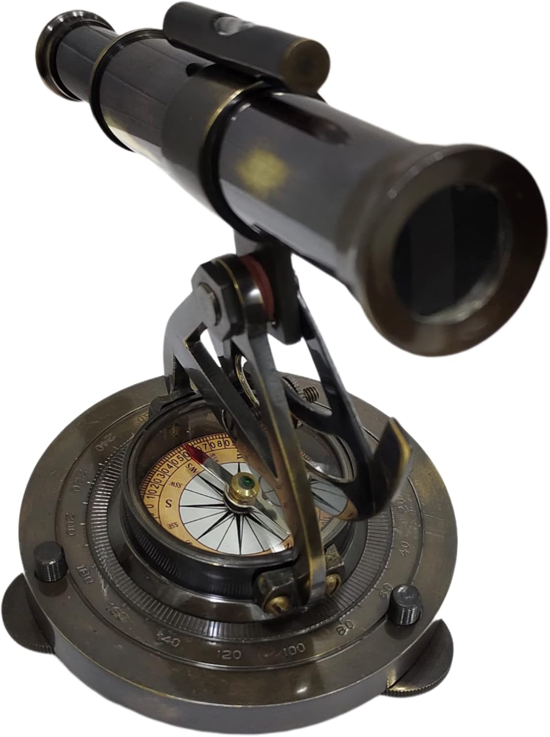 Whether you're looking for a functional tool to aid in navigation or a striking collectible to add character to your space, this item fits the bill. Its compact size makes it easy to showcase on a desk, bookshelf, or mantel, offering both visual appeal and practical use. Theodolite and alidade telescope design not only elevates its aesthetic but also ensures that it remains a functional and meaningful artifact for nautical lovers. The sturdy build and classic silhouette bring a unique and valuable touch to any collection, while its weighty 350 grams and 6.5-inch tube ensure a vintage feel thatâs as comforting as it is impressive.