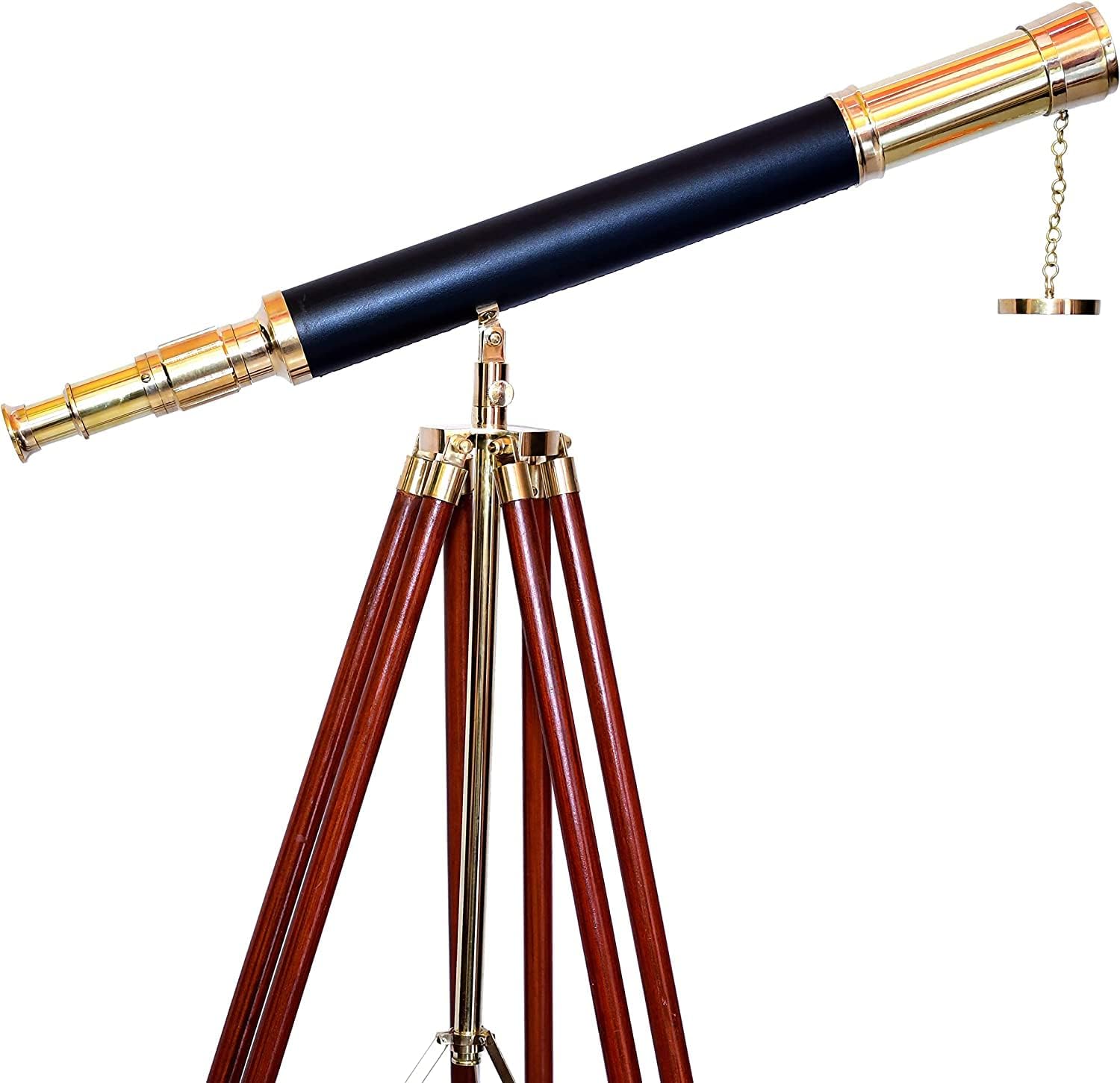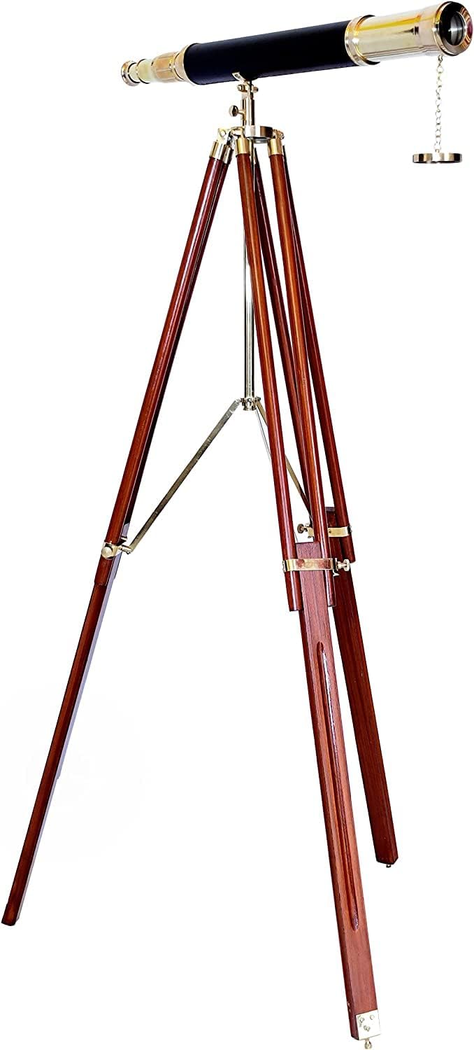 Add a touch of classic nautical charm to your space with this beautifully crafted vintage telescope. Meticulously designed for both functionality and aesthetics, it features a 42mm objective lens offering up to 15x magnification for clear views of the stars, wildlife, or distant landscapes. With its durable brass construction and polished shiny finish, this telescope is built to last while bringing elegance and sophistication to any room. The sturdy wooden tripod ensures it stands tall and secure, making it an ideal choice for use in your home, office, or study. Whether you're into sky watching, bird watching, or simply collecting statement pieces, this antique brass spyglass is a perfect blend of history and style. Its timeless design, inspired by classic maritime instruments, is designed to complement any decor and make a lasting impression.Vintage Antique Brass Finish Spyglass Telescope